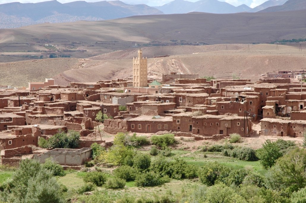 a middle-sized town at the last plateau of the High Atlas before the Sahara desert. Driving over mountain passes, seeing a lot of picturesque Berber mountain villages, viewing kashbas (ancient Berber castles) is indeed wonderful. Don’t miss the Kasbah Telouet and Ait Benhaddou (film location for “Lawrence of Arabia” a.s.o.).