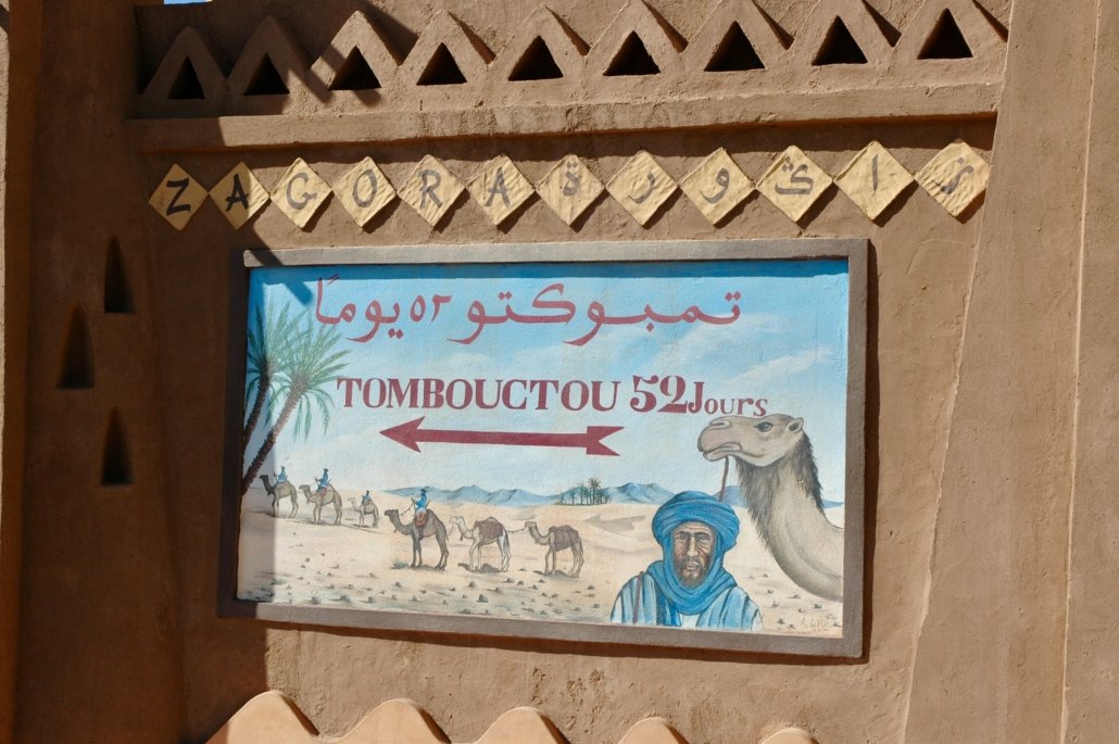 Explore them by foot and/or by car (your driver will know where to go). After leaving the ancient caravan station of Zagora (famous for its plate “52 days until Timbuktu”)